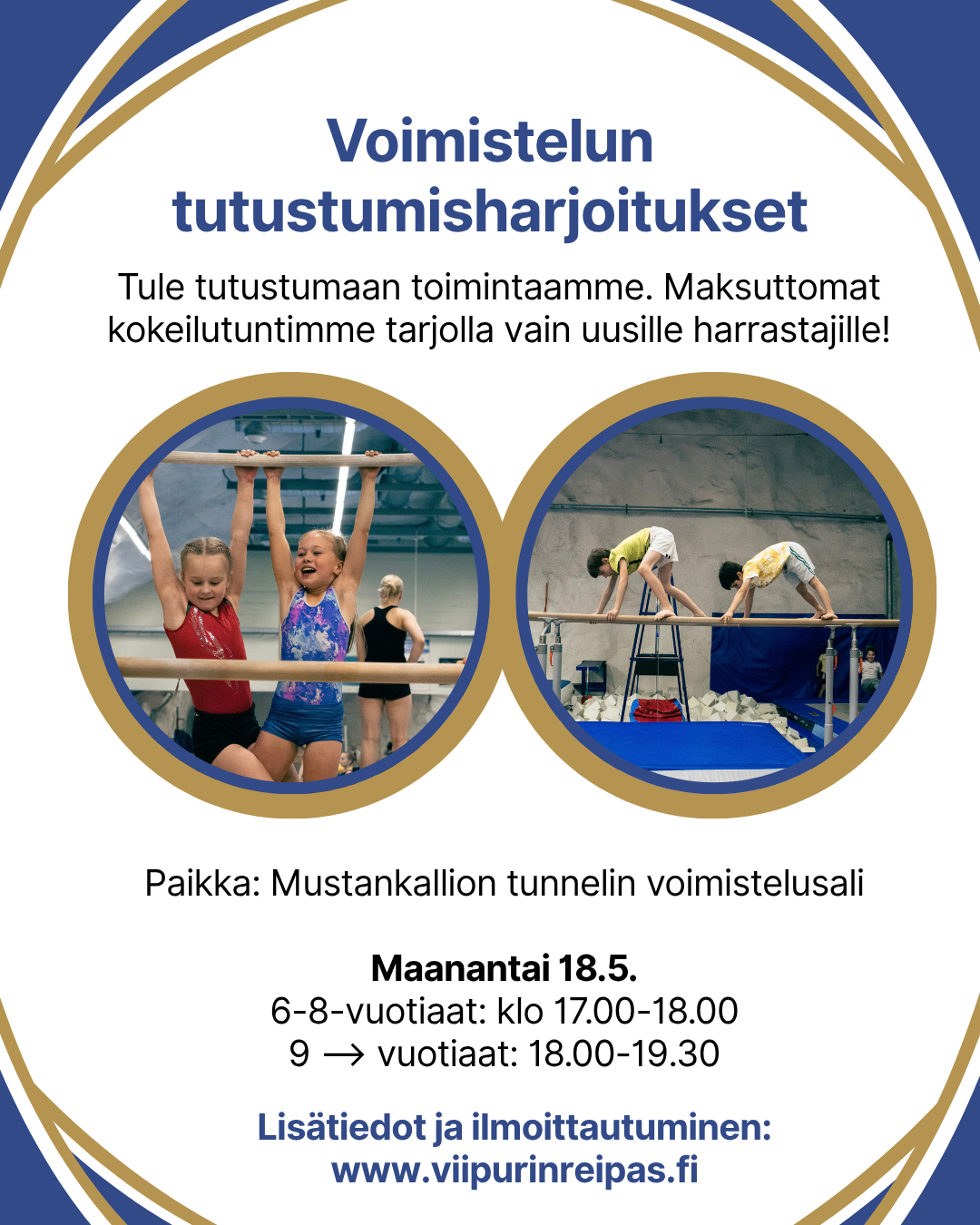 Tule tutustumaan voimisteluharrastukseen! Järjestämme avoimen ja maksuttoman harjoituksen niille, jotka eivät ole aiemmin olleet toiminnassamme mukana. Ilmoittaudu ryhmään iän mukaan:…